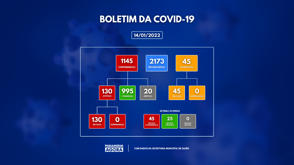 A Secretaria de Saúde de Paramirim informou nesta sexta-feira (14) a confirmação de mais 45 casos de covid-19 no município. Segundo a pasta, a maioria está...
